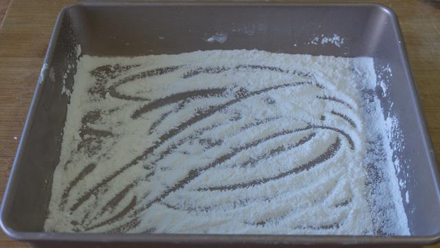 7、然后全部放入刚刚准备好的盘子里,摇晃均匀,让小丸子上都能裹上一层糯米粉,这样就不会粘连到一起了。