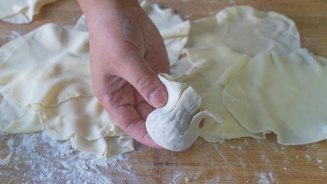 17、这样比较简单快速,捏好后再把饺子皮一张张地分开。