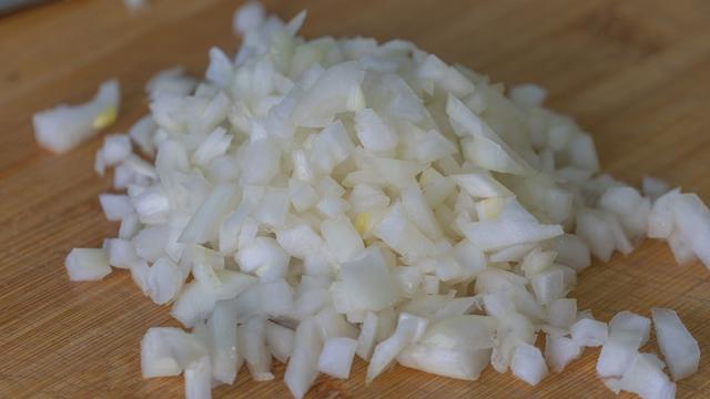 7、我还准备了半个白洋葱,也切成小丁就可以了。