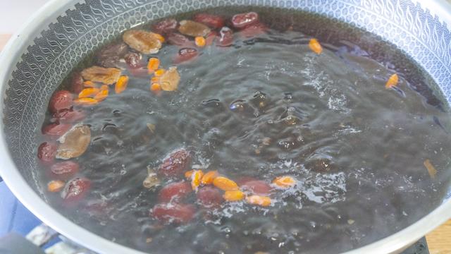 11、起锅烧水,加4块红糖、1把红枣、少许枸杞。
