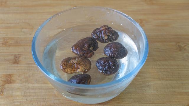 3、蒸糯米的时间我们来准备一些配菜,干香菇6个,清洗干净后再加温水泡软。