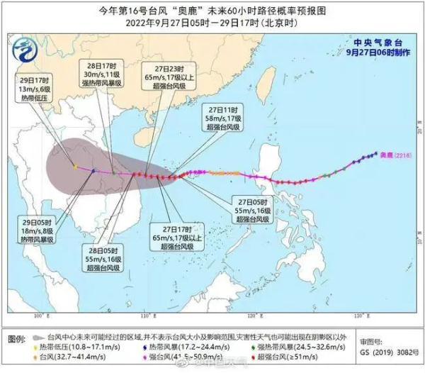 “奥鹿”将于27日经过西沙群岛南部海域,27日西沙还将有强降水并可能伴有16~17级阵风,请继续做好在港船只及岛礁设施安全防范工作;由于前期海南岛东半部地区出现持续强降水,土壤水分饱和,新一轮降水持续时间长,降雨量大,将使地质灾害、山洪、中小河流洪水风险进一步增高,请相关部门提前做好防范准备;9月30日前后南海可能有新的热带气旋生成,并给海南省带来一次强风雨天气过程。