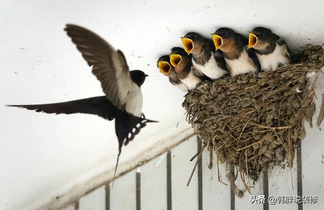 燕子在家筑巢,寓意着“人丁兴旺、幸福美满”。在老一辈人的眼里,燕子在谁家筑巢,就说明家里会出贵人,意味着这家有好兆头。因此,燕子筑巢也被当做“5喜”之一,是好兆头。