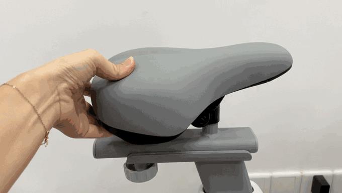 坐垫就靠这个小按钮,可以上下左右调节,找到合适自己的体位。家里有老人小孩的,也想运动一下,调节位置就可以了。