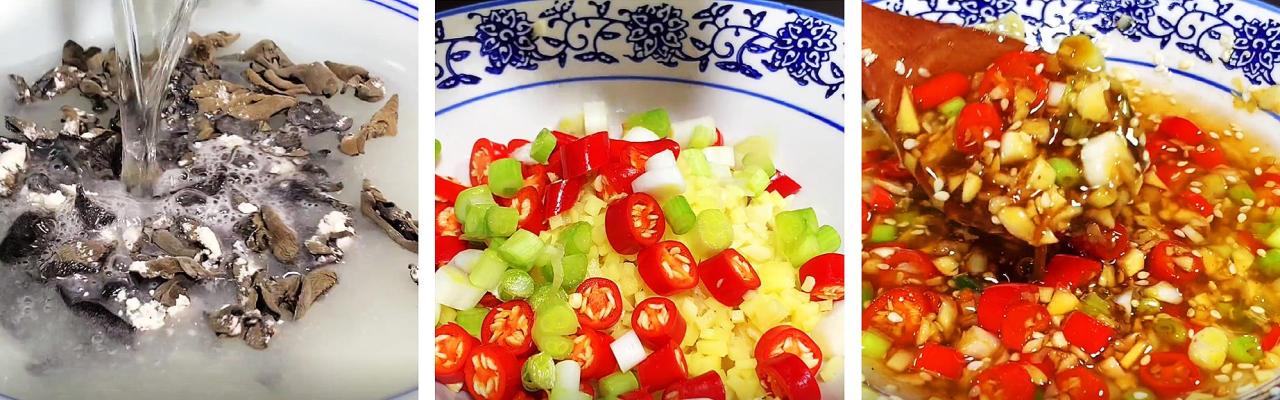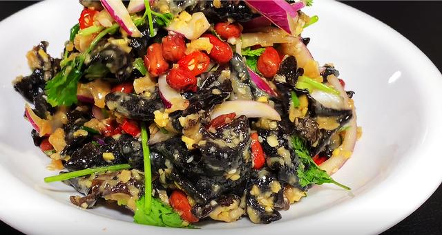 ┱ 食材清单 ┲木耳、小葱、生姜、大蒜、小米椒、花生米、洋葱、香菜
