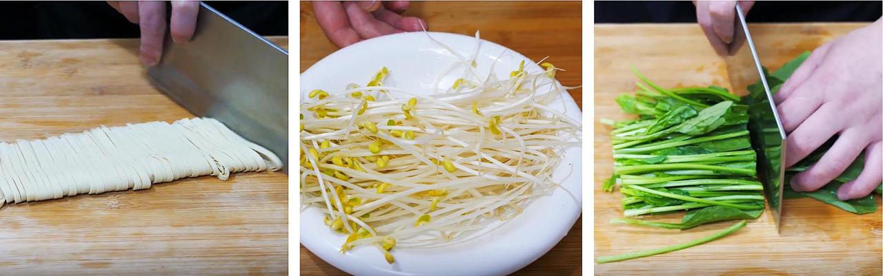 ┱ 食材清单 ┲豆腐皮、黄豆芽、菠菜、小葱、大蒜、干辣椒