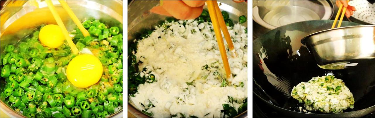 ┱ 食材清单 ┲线椒、鸡蛋、面粉
