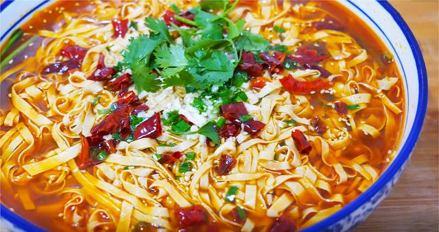 10、撒上一把白芝麻增香,再放入一把干辣椒段,淋入热油激发出香味,就可以开始美美地享用了。