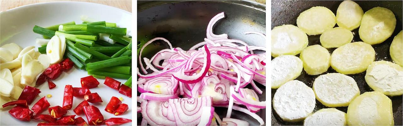 ┱ 食材清单 ┲土豆、青椒、红椒、五花肉、洋葱、小葱、大蒜、干辣椒