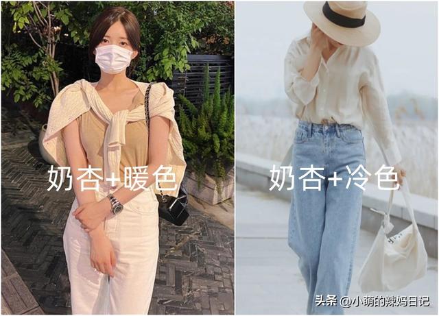 奶杏色本身带着放大显白的作用,如果你想打造更强烈的显白效果,那就可以选择和奶杏色同色调的米色、白色或者深一点的卡其色等都可以,色系相近,整齐利落,温柔又显白皙感。
