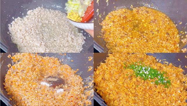 6、接下来锅中烧油,放入肉末炒一炒,小火慢炒,煸炒出里面的油脂,然后再继续炒,炒到焦黄的时候,然后再放入萝卜丁 再放入粉条,继续炒,之后再添加盐 鸡精 蚝油 生抽 老抽 胡椒粉 五香粉 调味 超入味 再放入红薯丝 翻炒均匀 再给盛出备用