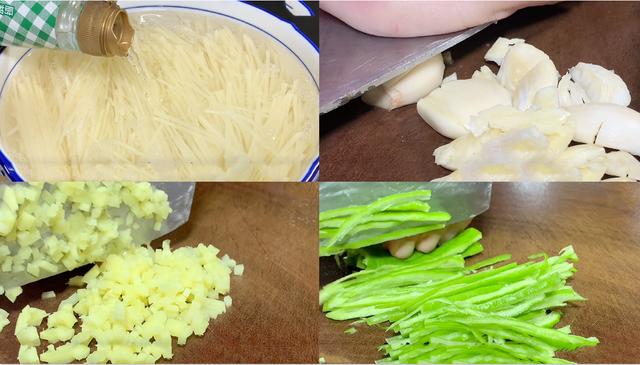 再准备一些青椒 , 先给去籽去蒂,然后再给切成辣椒丝