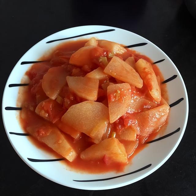 在锅内加入少许油,再放入葱末、姜末爆香,把番茄放入煸炒片刻,倒入山药,加少量盐翻炒均匀即可出锅。