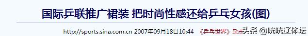 其实很多项目为了增加观赏性,在前几年曾多次建议选手在比赛中穿裙装,比如一直在致力于商业拓展的乒乓球项目。乒联曾多次推广裙装。