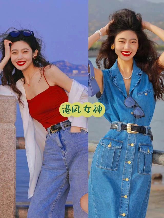 港式复古当中比较有代表性的元素就是牛仔,牛仔裤或者是连体牛仔都能够打造出极强的复古感和港式美女的气质。