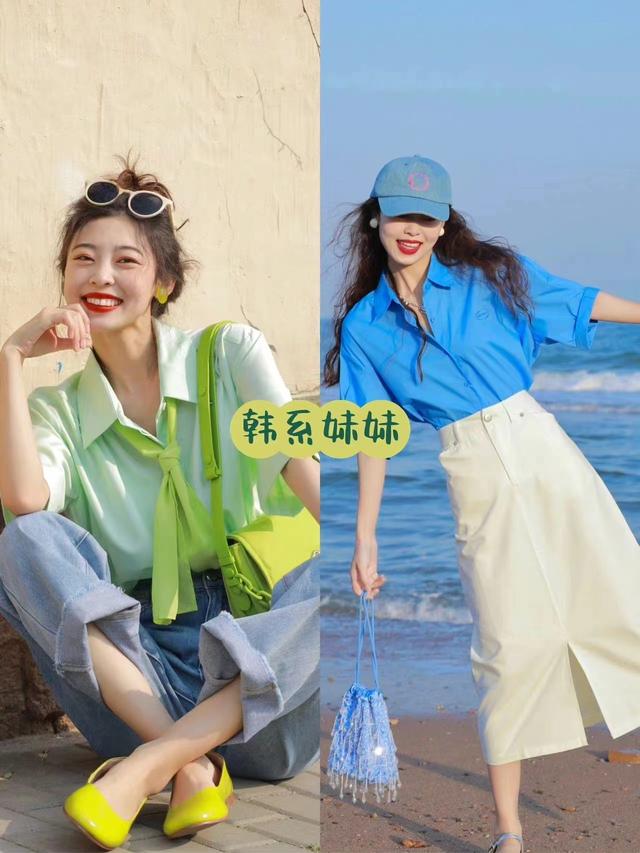 而且韩系的妹妹风格有十足的减龄感,在色彩的应用上也十分清新,以衬衫或者是Polo衫作为搭配,无论是牛仔裤还是半身裙,照出来的照片既好看又清新。