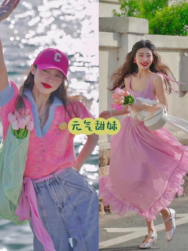代表者甜妹风格的粉色选择适当的饱和度进行搭配,可以进行的展现美感和风格上的优势,元气满满。