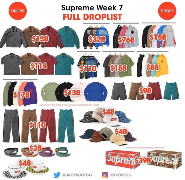老规矩,还是先来看看Supreme 22SS【Week7】所有单品Retail Price▼