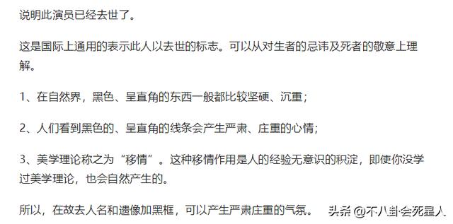 而原来名字被框就说明这位演员已经离开了,作品播出时就会将演员的名字框起来表示敬意。