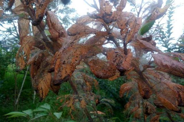 美国白蛾是一种典型的多食性害虫,寄主十分广泛,包括桑树、榆树和白蜡等600多种植物。美国白蛾幼虫侵食树木叶片后,树叶通常呈现出透明状态;当树木叶片肉质部分被侵食后,幼虫就会对剩余网状叶脉进行蚕食。