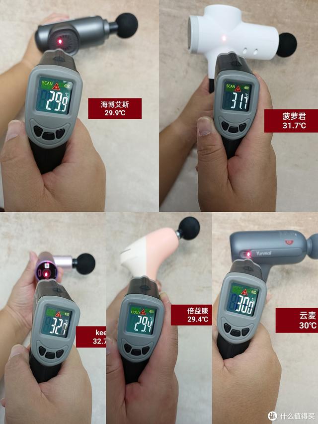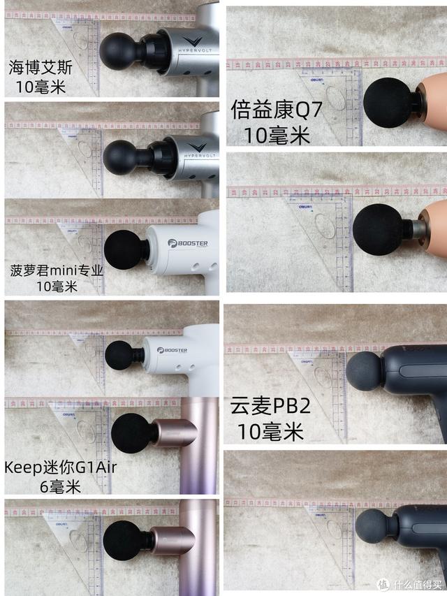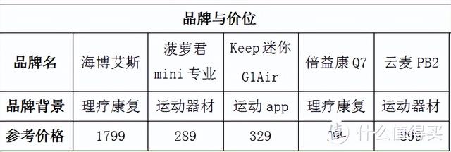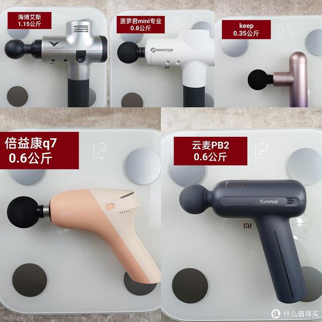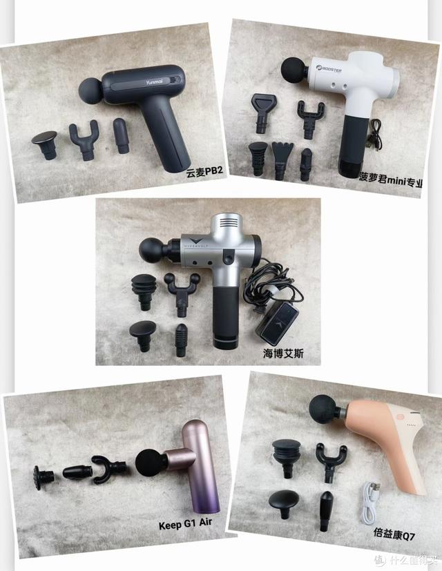本次测评涉及的产品,是海博艾斯、菠萝君mini专业、Keep迷你G1Air、倍益康Q7、云麦PB2,这5个品牌的热销机型。价格从1800横跨至300块。重量从2斤到1斤。品牌背景包括运动器材、理疗康复和运动APP。