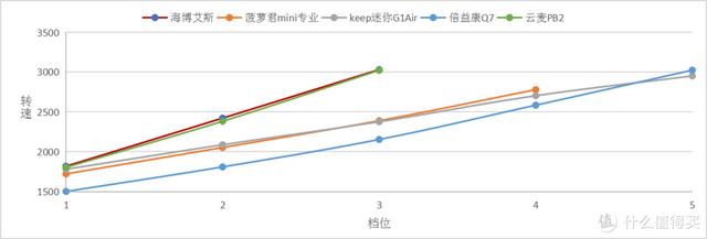 另一个核心指标是,在不同档位下,筋膜枪的转速的变化幅度是否平稳(曲线是否平滑)。