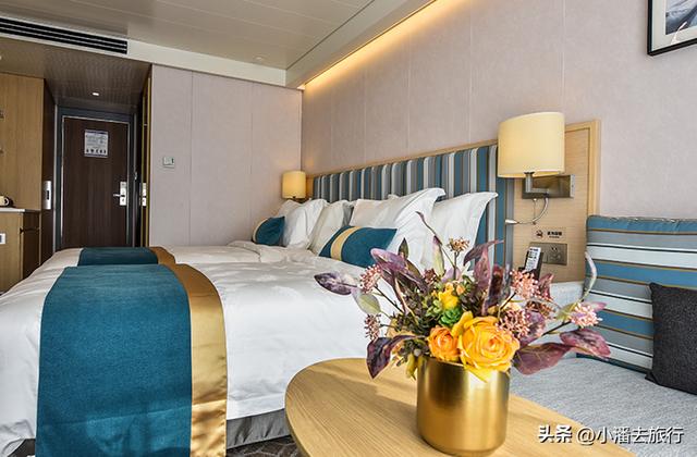豪华标准间:船上数量最多的房型,位于2.-5楼,乘客可以在房间里180度观景,入住体验比较休闲舒适。适合喜欢安静的乘客。每人的船票价格4500元。