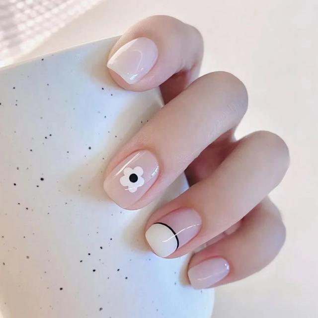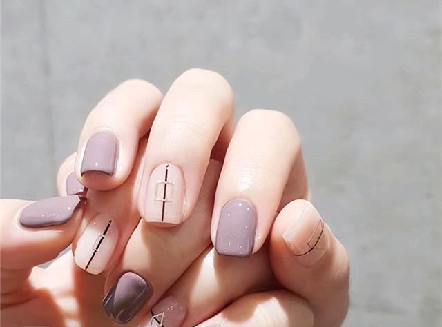 要想显手白,就用低饱和!几何直线和方形小装饰,拉长指甲还有质感~