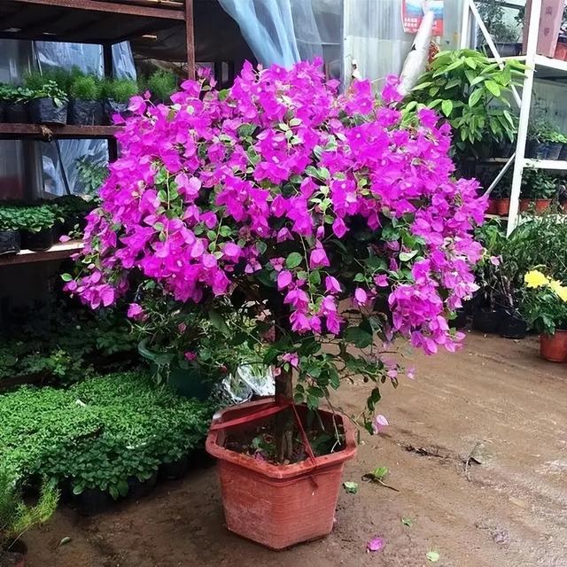 它也是一种很勤花的植物,非常勤奋,能经常开花,三角梅除了比较怕寒冷,冬季五度以下,要搬入室内养花管理,其他方面,都比较泼辣,不怕暴晒,不怕淋雨,开花非常多。