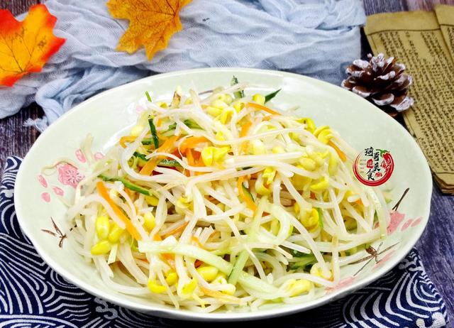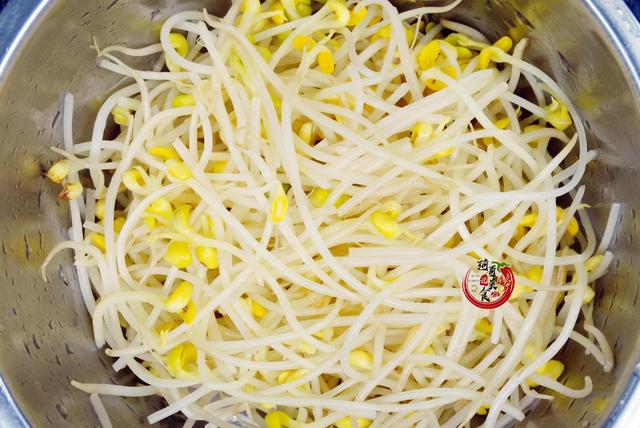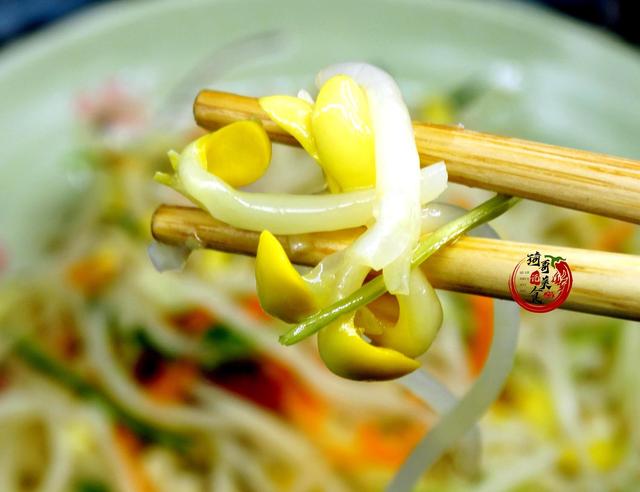 这道菜还有个响亮的名字,叫作“拌金钩”,看看弯曲的黄豆芽是不是像“金钩”的样子。