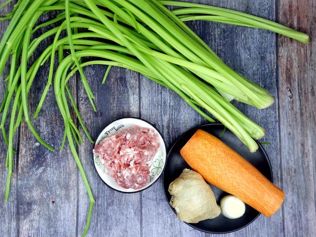 所需食材:芹菜,胡萝卜,猪肉馅,葱白,生姜