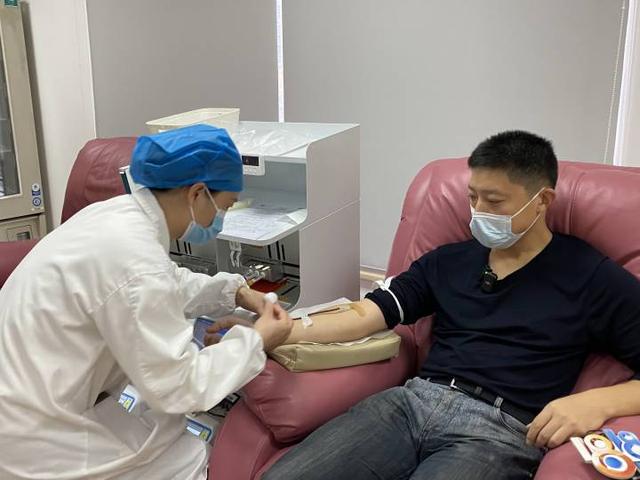 陈先生正在省血液中心献血。(浙江省血液中心供图)