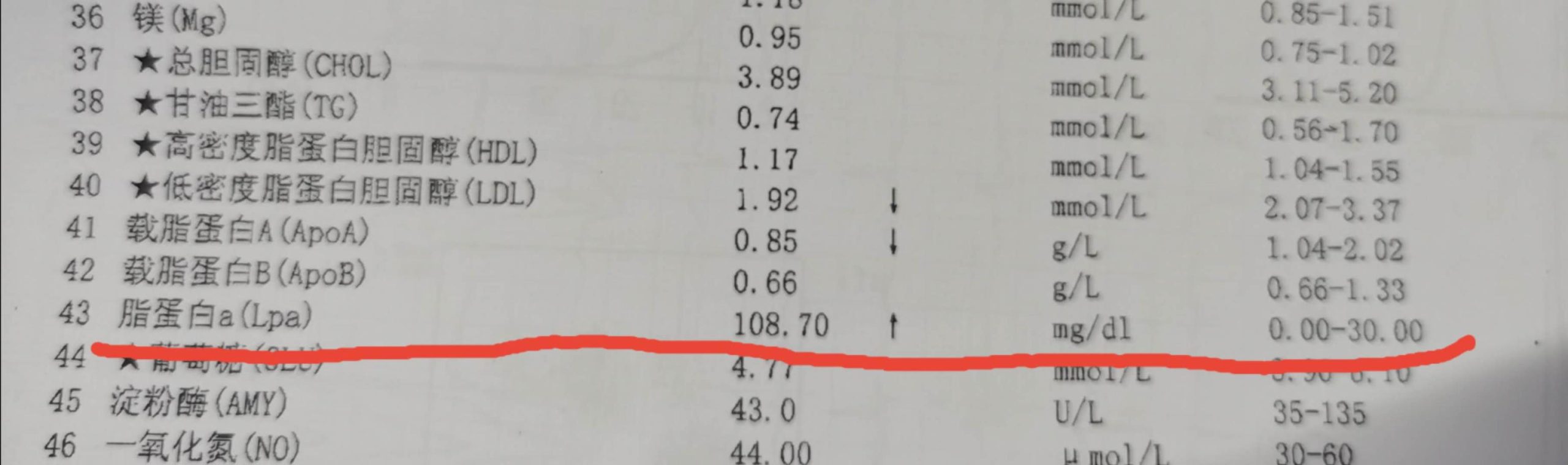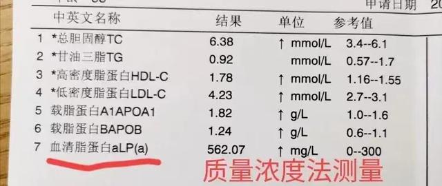 而脂蛋白(a)现阶段我们国家不同医院的化验室,使用2种主要检测方法进行检测,一种被称之为“质量浓度法”,另外被称之为“摩尔浓度法”。大家如果检测过这个指标,可以现在打开你的血脂化验单,如果你的脂蛋白(a)参考单位是“mg/l、mg/dl、g/l”,那这就是“质量浓度法”进行检测的,这种方法测量的数值,一般高于300mg/l、30mg/dl、0.3g/l,算是升高;而如果参考单位是nmol/l,那超过75nmol/l就算是升高了。至于两种方法哪种更准确?现在主流医学界认为,摩尔浓度法可能更加准确一些。