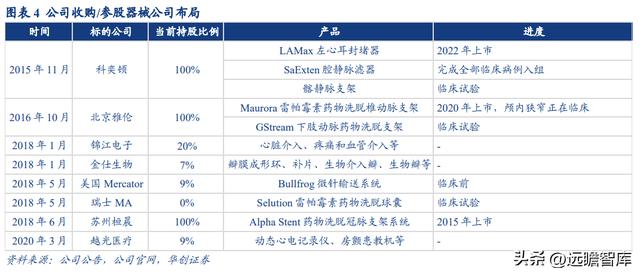 3)器械子公司拟分拆上市。2009年3月公司成立深圳信立泰生物医疗工程有限公司,进军创新医疗器械领域。2015年起公司先后收购了科奕顿、北京雅伦、苏州桓晨,并参股锦江电子、金仕生物等,快速形成创新医疗器械产品梯队,涵盖心脑血管介入、外周血管介入、结构性心脏病等。