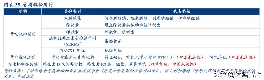 4、骨质疏松:公司拥有国内最全的骨质疏松产品组合
