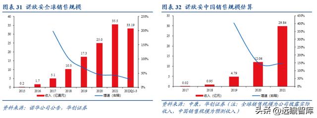2021年诺欣妥在全球销售收入(考虑诺欣妥仅在中国获批高血压适应症,预计主要收入均来自心衰适应症)超过35亿美元(+42%),22Q1-3达33.19亿美元(+28%)。在中国市场上,根据中康数据估算,诺欣妥2021年中国区收入达到29.84亿元(+147%)。诺欣妥的成功也充分证明了ARNI市场的潜力。