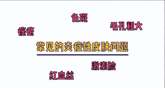 肌肤炎症会导致胶原蛋白流失,肌底弹力提拉网被破坏,从而引发细纹和皱纹,色斑和肤色不均。最终导致皮肤松弛而且肌肤炎症还会大大降低你肌肤修复,美白,抗皱等等方面护肤的效率及成果。