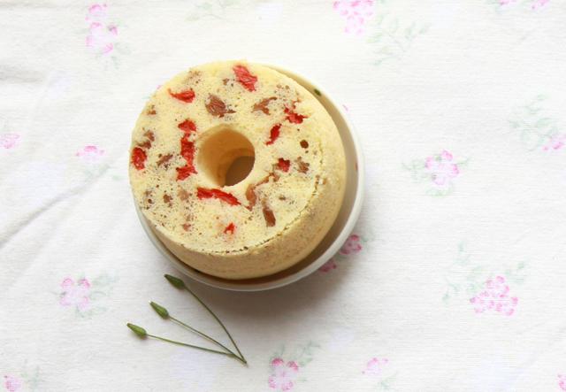 食材:鸡蛋 1 枚、低筋面粉 50 克、牛奶 40 毫升、糖 30 克、葡萄干和蔓越莓干适量