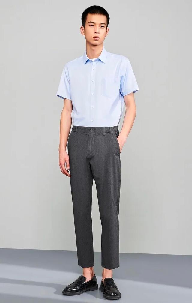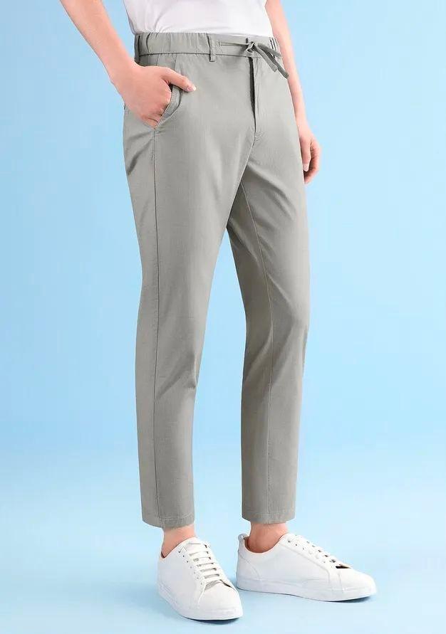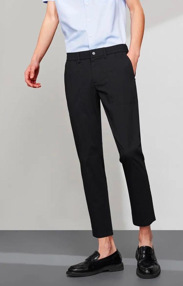 先说说大家平时上班的时候穿的休闲裤,下面的这一条是松紧带设计的,还是挺有意思的,它的颜色也是属于百搭型的,只要大腿上肉肉不是很多的男生都能穿的好看一些。