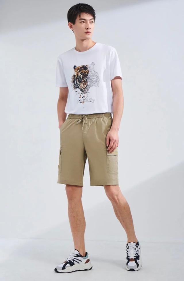 这一种卡其色的就比较适合大家出去见客户,或者是稍微偏正式一点的场合穿,既能够保证你清爽的画风,又使你在大夏天不会热到出汗。短裤真是一样非常好的东西,大家应该多穿。