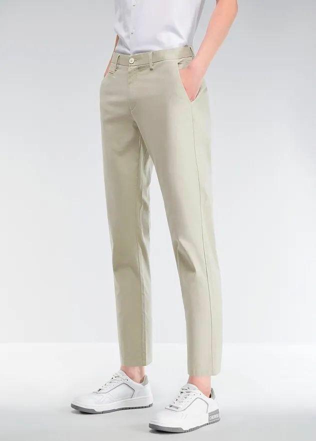 下面的这一条我可是太推荐了,他的颜色是非常淡的卡其色。众所周知,各位男生们的衣柜里一定会有好几件卡其色的衣服,而这也是简单又百搭且不会出错的。它的长度也适中,刚好在脚踝的位置能够更好地拉长比例。