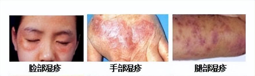湿疹常表现为丘疹,丘疱疹、红肿、瘙痒及患处皮肤暗红色(红斑)等症状