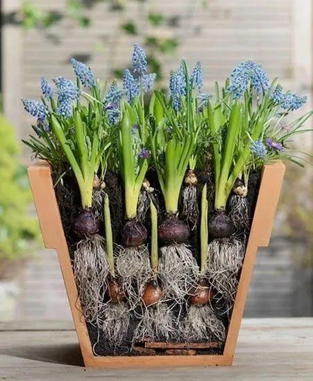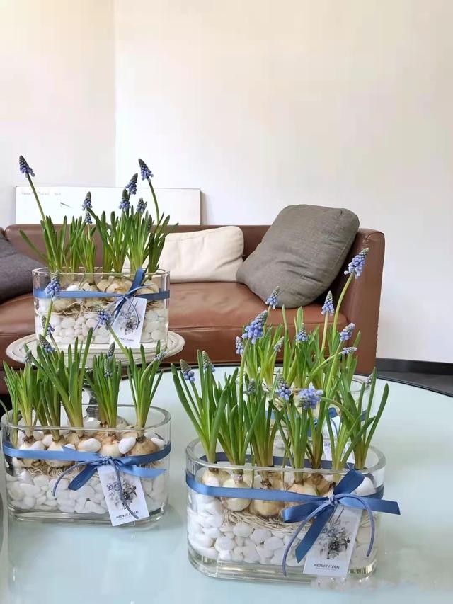 葡萄风信子每年都可以绽放美丽的小花朵,而它的小球也可以不断长大,不断繁殖,它在极短的时间里就能繁殖出几十个的小球,送人都送不完。