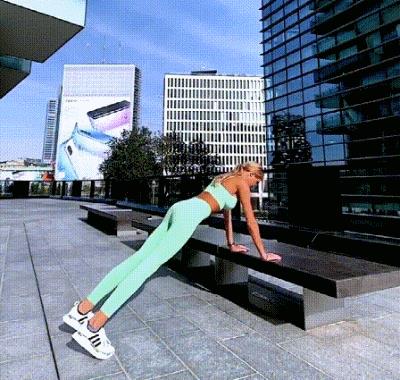 动作一:上斜俯卧撑+交替摸肩(进行10-12次,重复3组)