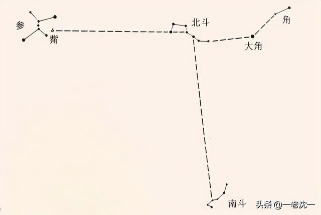 第一步,古人重点观测了“北斗”的两侧,发现了东方的“角宿”和西方的“参宿”,而且总结出了“北斗”运行与此二宿的关系。