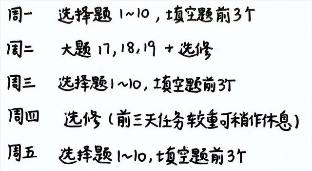 基础,是重中之重,纵观近几年的高考题,大家也可以发现高考题也是以基础为主,因此每天做点基础题非常重要,可以根据自己地区的高考卷结构制定自己的基础题刷题计划。下图为我高三后期制定的基础刷题计划: