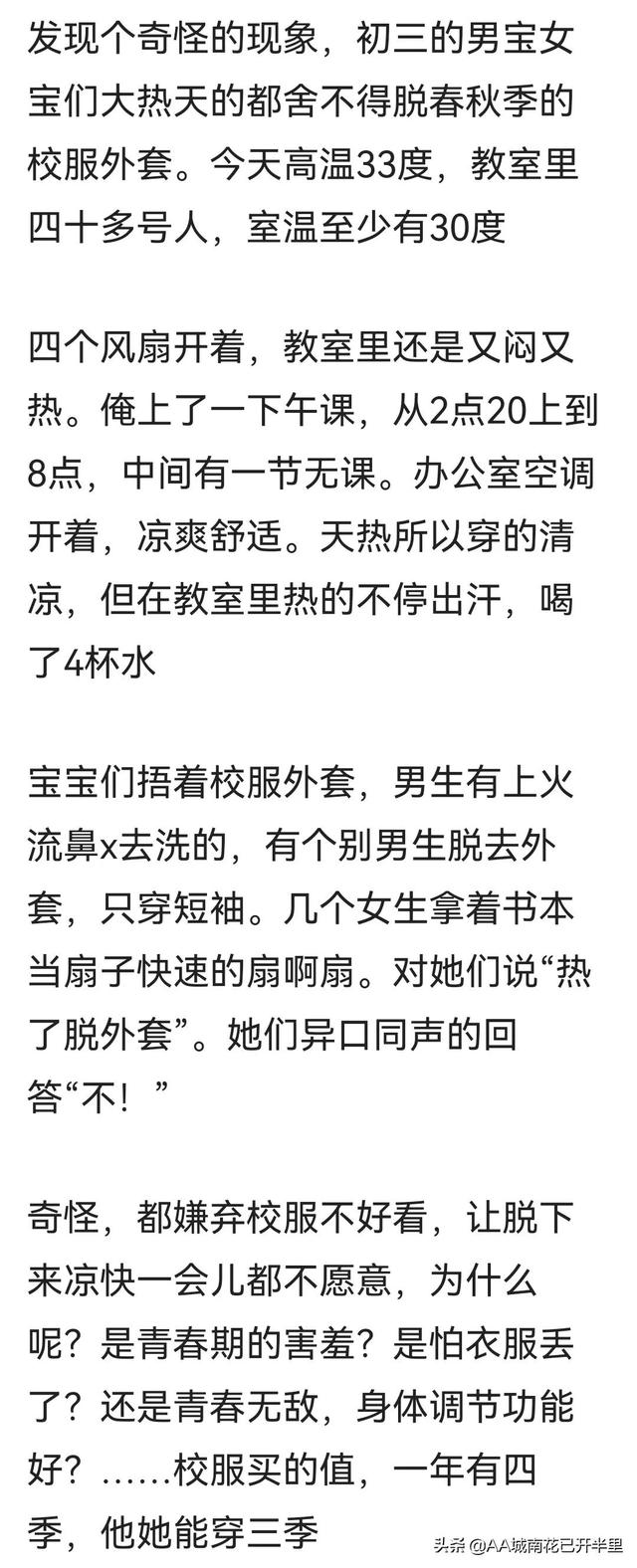大夏天,初高中生男男女女都穿着校服外套,网友:青春期孩子害羞。