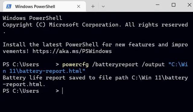 您无需亲自检查电池即可了解其状况。在 Windows 11/10 设备上,使用以下 PowerShell 命令(在管理员模式下)检查电池容量。