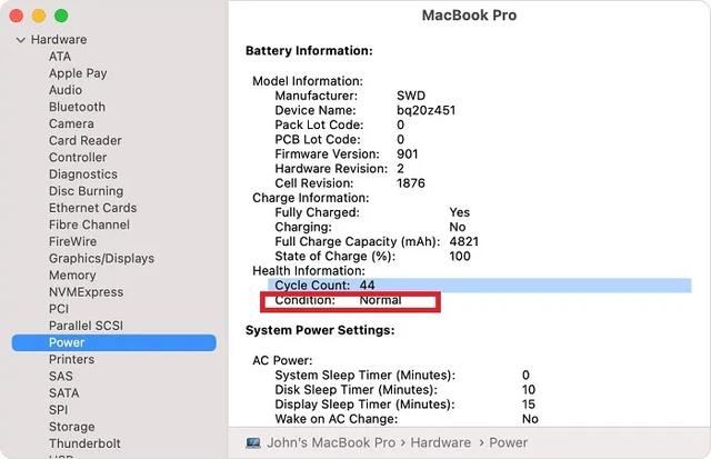 如果您使用的是 MacBook,请转到“Apple 菜单 -> 系统信息 -> 硬件 -> 电源”,然后向下滚动以检查电池的“状况”字段。如果它显示为“正常”,则您无需担心。但是,如果它显示“建议维修”,您可能需要更换电池。