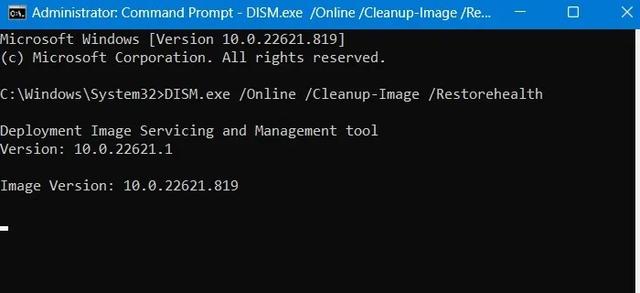 对于任何丢失的驱动程序或损坏的注册表问题,请使用 DISM 命令来恢复系统的整体健康状况。